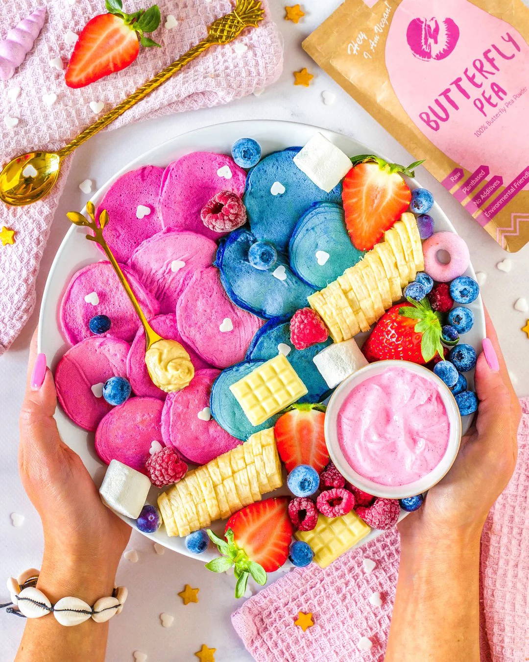 Butterfly Pea er et pulver lavet af tørrede, smukke blå ærteblomster. Pulveret er rigt på proanthocyanidiner og antioxidanter. Disse blomster har længe været brugt i Asien til at farve mad.