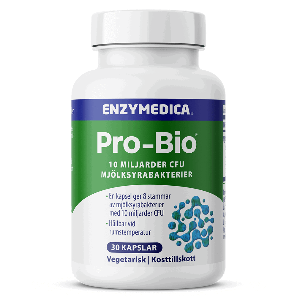 - Pro-Bio overlever mavesyre. De vigtigste bakterier trives i de hårdeste fordøjelsesmiljøer og bliver ikke påvirket af mavesyre og galdesyrer.