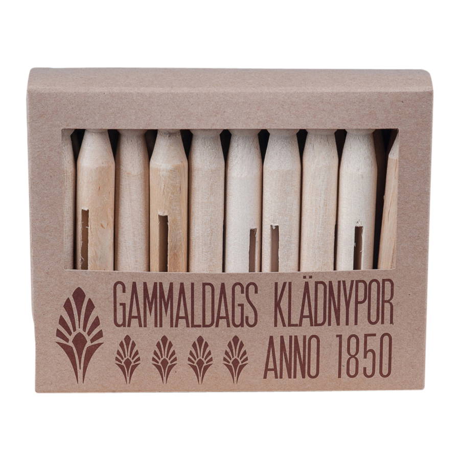 Klassiske tøjklemmer i træ, fremstillet af bæredygtig svensk birk. Slidstærke og rustfrie, perfekte til både udendørs og indendørs brug.
