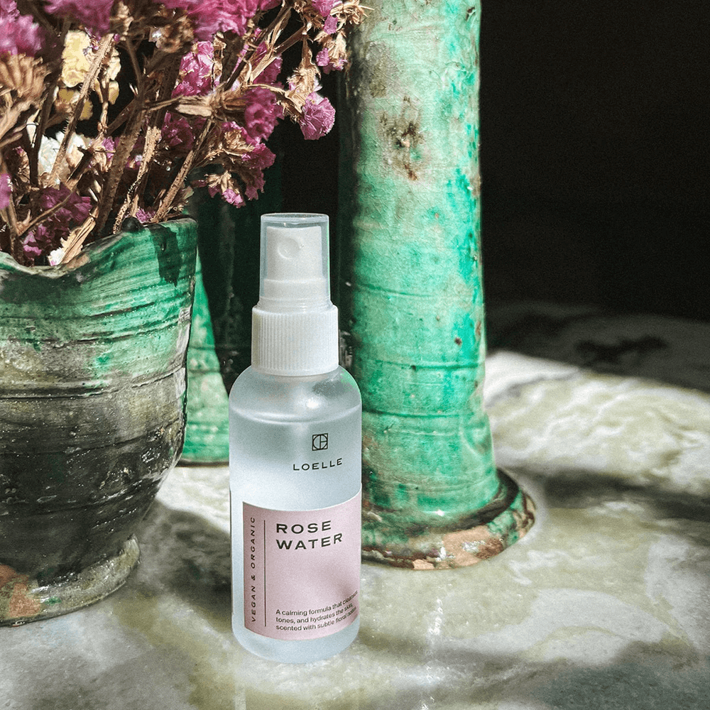 Loelles økologiske rosenvand (hydrolat) kommer fra et økologisk certificeret kooperativ i Marokko. Hydrolater er et antiseptisk vandholdig produkt, som fremkommer når man producerer æteriske olier af blomster og urter. Loelles rosenvand kan blandes i ansigtscreme og lotion, bruges som ansigtsspray eller til fugtning af hovedbunden. Det kan også tilføjes som nogle dråber i badevandet.