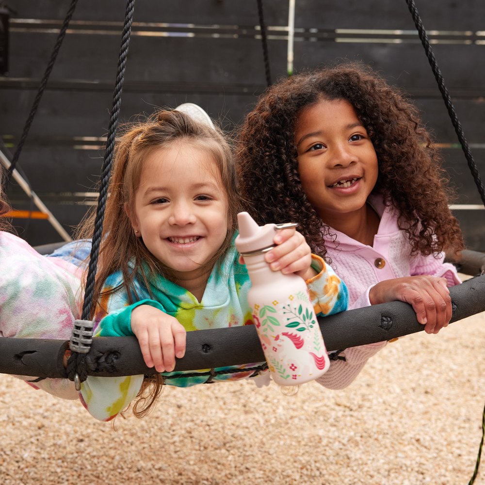 The bottle, which is easy to clean, has rounded corners without sharp angles where dirt or bacteria could otherwise easily get stuck. It has a slim design and fits most bottle and cup holders. The large 44 mm opening makes it easy to clean and fill with ice, cucumber slices, etc. Take the water bottle on outings, to the playground, beach, in the car, on the plane, or out in the forest. A sippy cup made of stainless steel is a good and non-toxic alternative for your child.