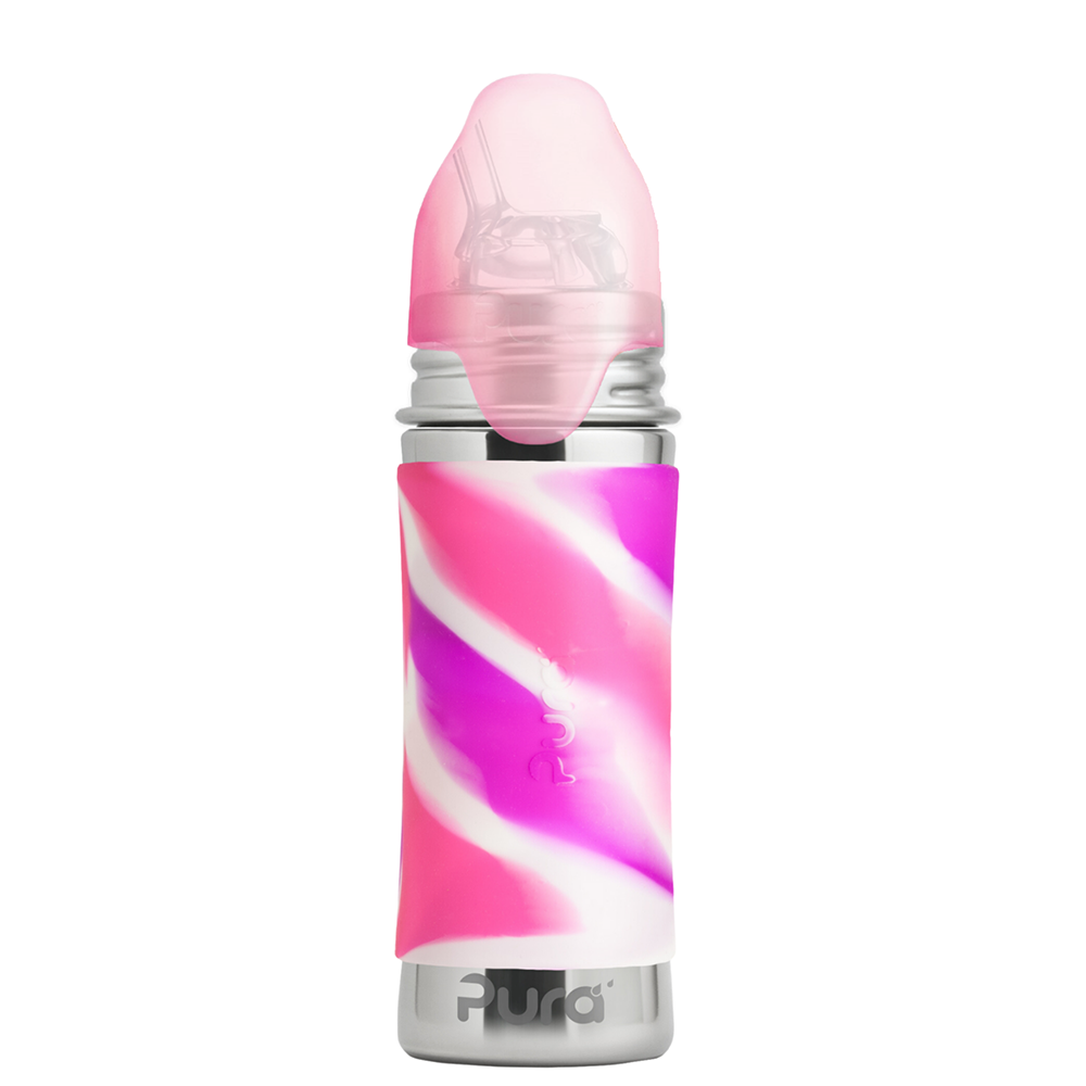Pura - Kiddo Straw Bottle Stainless Steel with Silicone Sleeve 325 ml, Pink Swirl