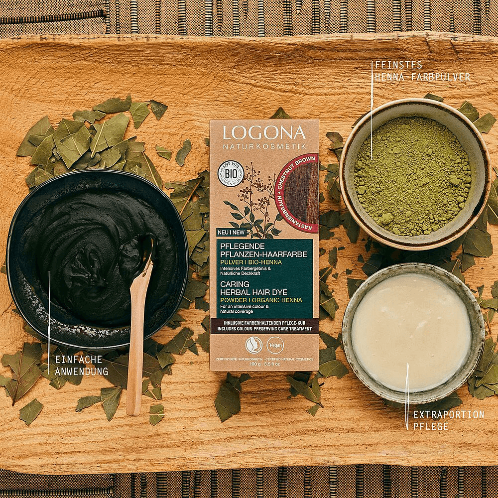 The plant powder is finely ground, which allows the color pigments to adhere exceptionally well to the natural hair structure. For optimal color adhesion, we recommend thoroughly cleansing the hair and removing all product residues before applying the hair color. We recommend using Logona Essential Care Organic Nettle Shampoo or Logona Color Prep Treatment.