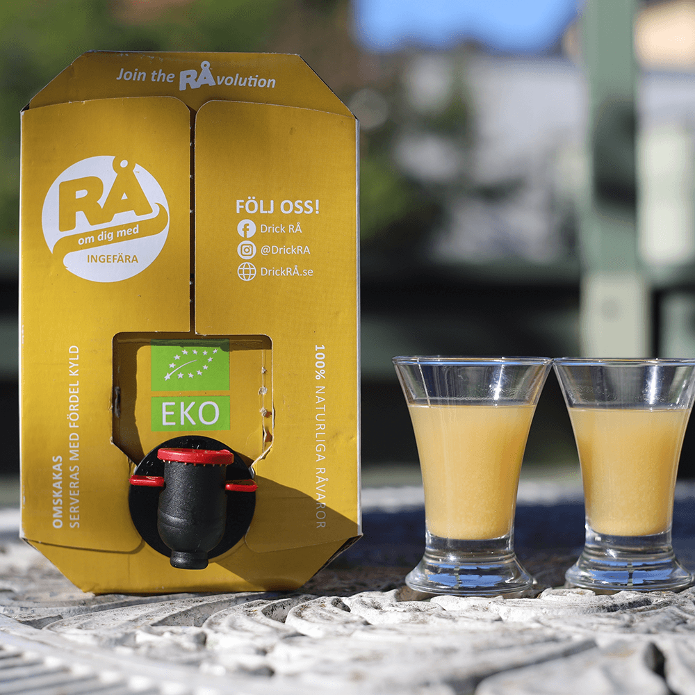 Facts: RÅ was founded after the founder Tomas suffered a heart attack. The heart attack made him start thinking about his lifestyle and how diet can affect health. He read numerous studies about the beneficial effects of beetroot on the body and simultaneously began juicing beetroots himself at home in his kitchen. Tomas quickly noticed a positive effect and wished he had beetroot juice ready in the fridge every morning so that he wouldn't have to juice it himself. The solution became RÅ and raw juice in a box that makes everyday life easier in many ways. RÅ only uses the best raw ingredients of the highest quality. They don't add any sugar or sweeteners, instead using the natural sweetness found in vegetables and fruits. The juices are pasteurized, which means the company doesn't need to add preservatives. The smart bag-in-box also extends the shelf life somewhat thanks to being airtight. RÅ wants to make it easy to make healthy choices in life and therefore offers many different flavors of their delicious juices.