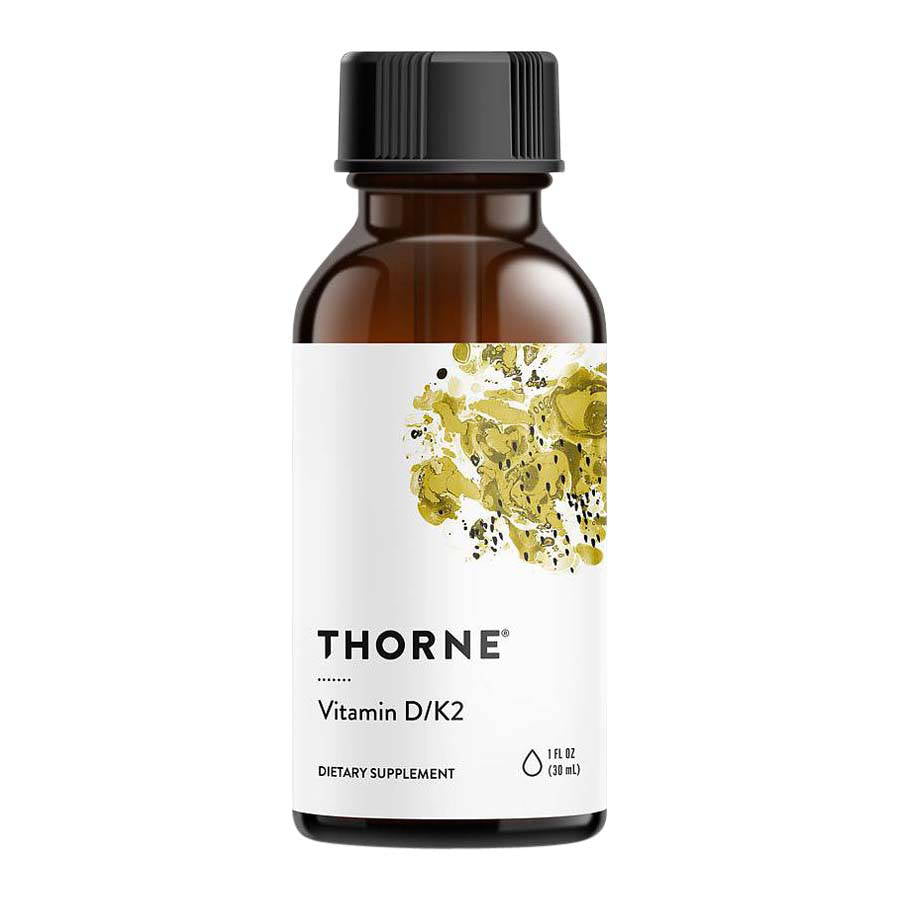 Thorne's liquid Vitamin D/K2 is dissolved in MCT oil from pure coconut and preserved with natural tocopherols (Vitamin E).