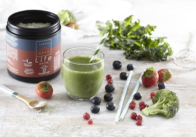Terranova's Life Drink er et supert kosttilskudd i pulverform som inneholder en stor mengde fytonæringsstoffer, antioksidanter, sporstoffer, klorofyll, vitaminer, proteiner, enzymer, melkesyrebakterier, essensielle fettsyrer og fiber.