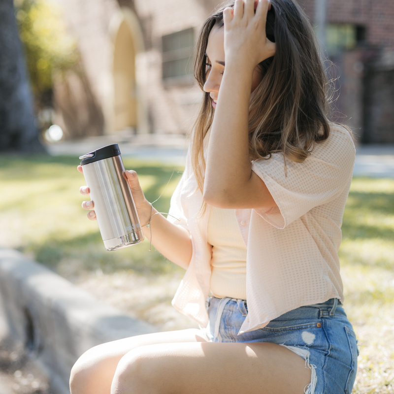 Klean Kanteens vakuumisolerade TKWide-flaska är tillverkad av rostfritt stål. Den har en läckagesäker kafékork (TKWide Café Cap) i PP-plast som har ett svänghandtag vilket gör flaskan mycket lättburen. Flaskan är framtagen med flexibilitet, bärbarhet och prestanda för att skapa den bästa vattenflaskan, kaffekoppen, sportflaskan och isolerade muggen i ett och samma paket. Oavsett om du befinner dig ute i vildmarken eller i styrelserummet så är det här flaskan för dig som tycker om kall eller varm dryck.