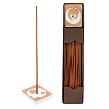 Innehåll: 40 kortare stickor á 30 min och en liten, fyrkantig, brun porslinshållare med motiv av blommor. Tillverkad i Japan.