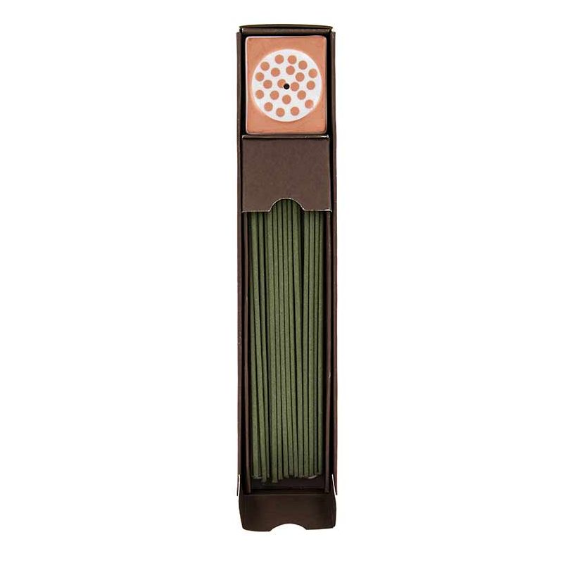 Innehåll: 40 kortare stickor á 30 min och en liten, fyrkantig, brun porslinshållare med motiv av blommor. Tillverkad i Japan.