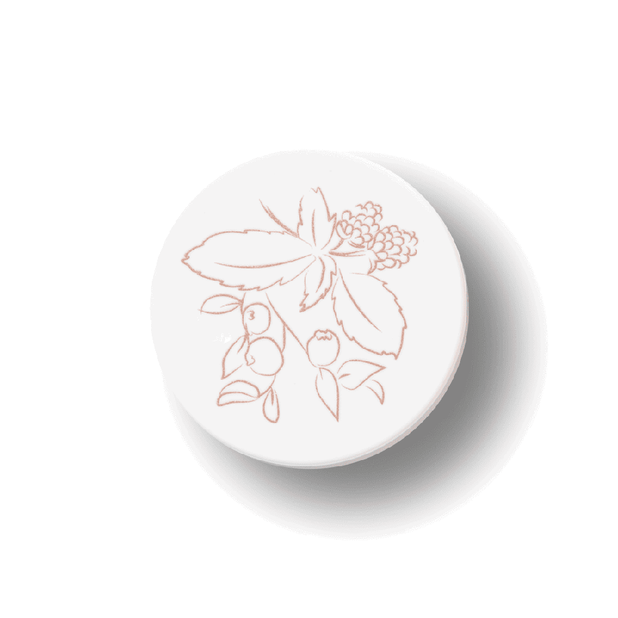 Den är tillverkad med en bas av mjukgörande och fuktgivande kakaosmör, sheasmör och bivax. Färgen kommer från pigment från antioxidantrika frukter och grönsaker som hallon, tranbär, blåbär, persika, tomater och morötter. Det är helt fritt från syntetiska konserveringsmedel, dofter och kemikalier.