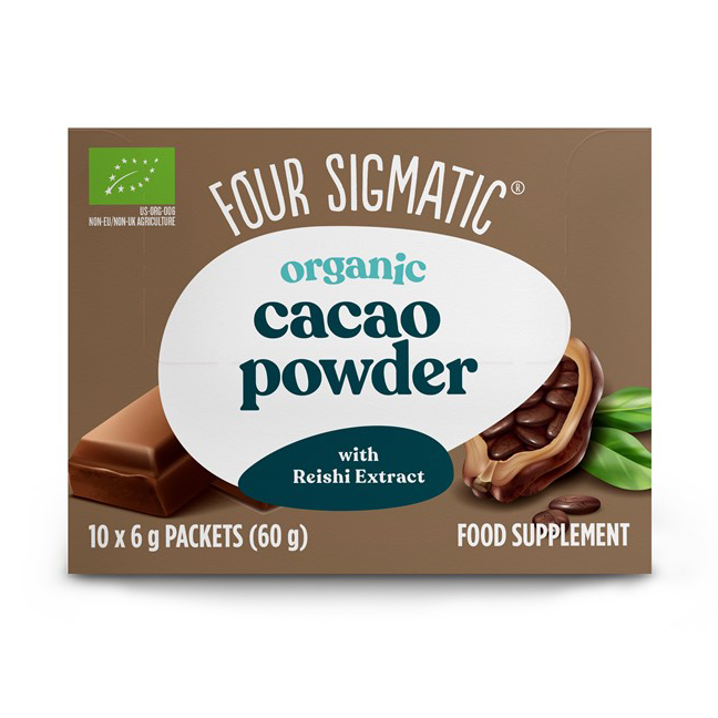 Instantpulver med extrakt av Reishi, kakao, kanel, kardemumma, sötad med kokossocker och lite stevia i praktiska portionspåsar. Den är enkel att blanda ner i vatten, valfri mjölk, smoothies eller desserter.