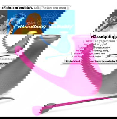 Material: Yogis NoseBuddy är framställd i miljövänlig plast, godkänd för medicinskt bruk. Kanna i PP-plast och sked i PS-plast. Återvinns som hårdplast.
