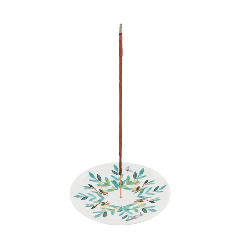 En rund porslin rökelsehållare med vackra feminina mönster, perfekt för dina rökelsepinnar. Keramik för rökelse är både praktiskt och estetiskt.