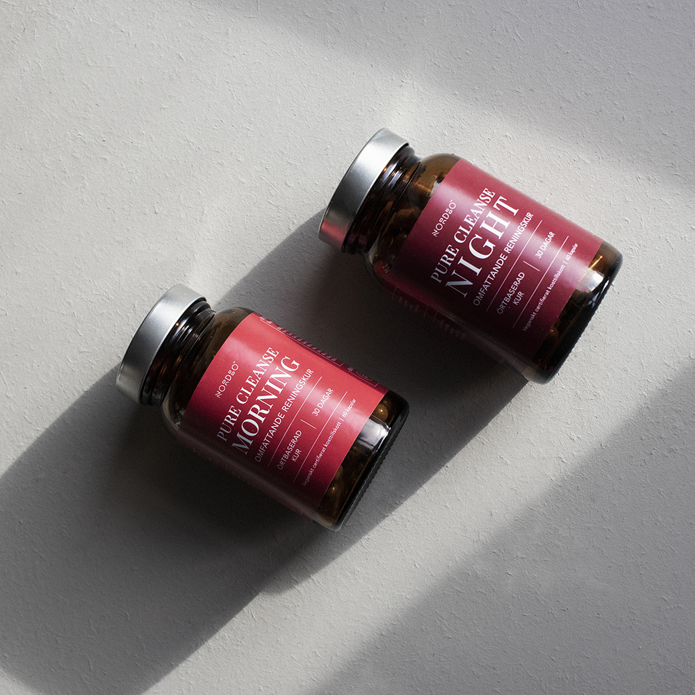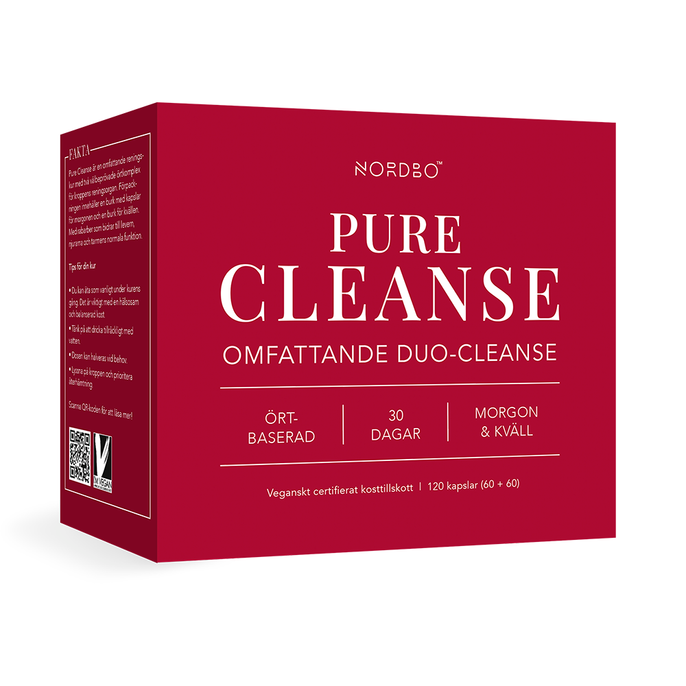 Pure Cleanse är en örtbaserad 30 dagar lång duo-kur med bl.a. kronärtskocka, gurkmeja, alger, rabarberrot och triphala. Kuren innefattar en morgondos och en kvällsdos som tas i kapselform.