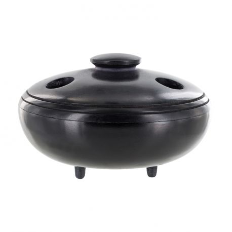 - Med locket ner och stängt går det bra att bränna koner, kol och aromatiska hartser i skålen då det är tre stycken hål i locket som låter röken komma ut.