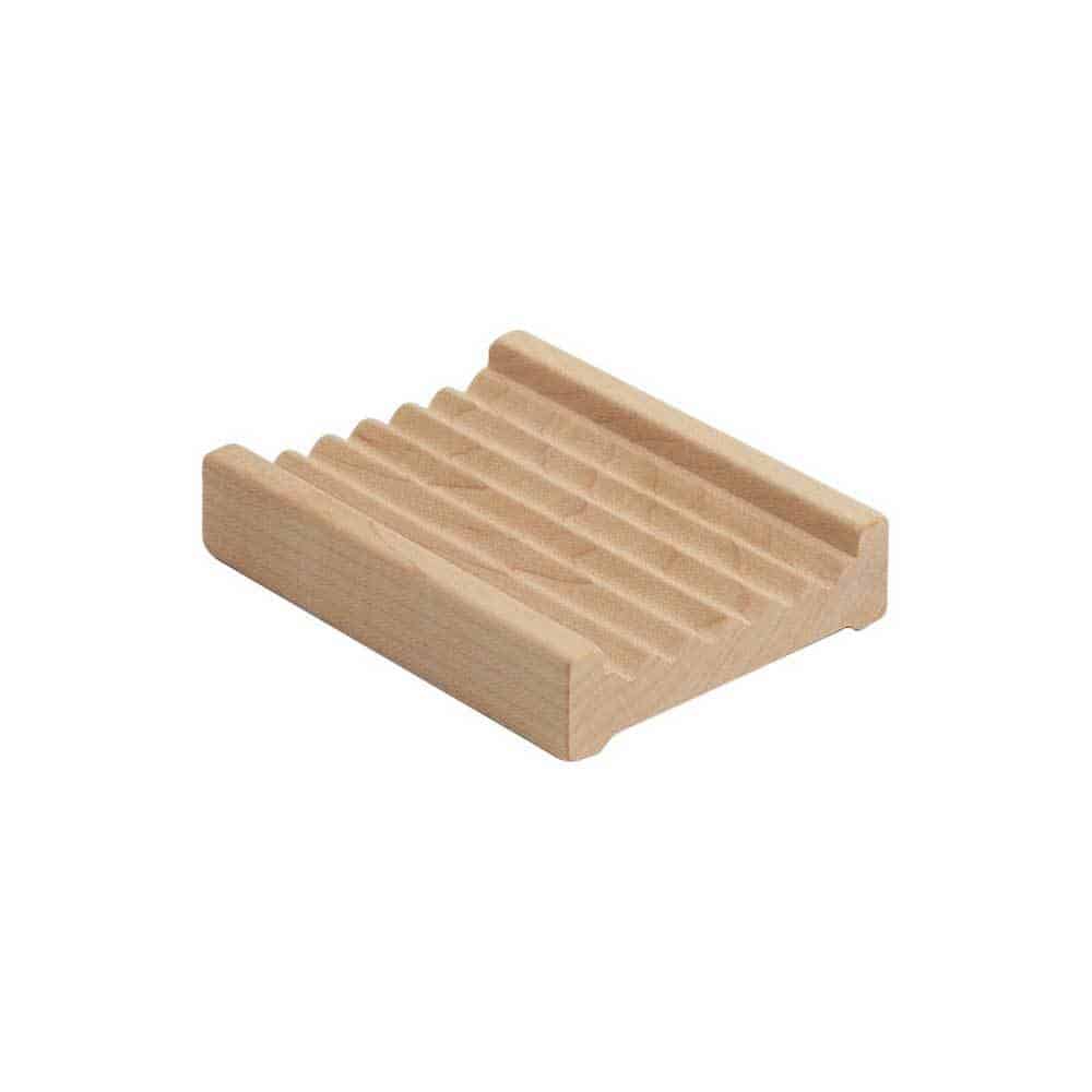 En fin, nätt tvålkopp i trä som tillåter dränering för att hålla din fasta tvål fin och torr.